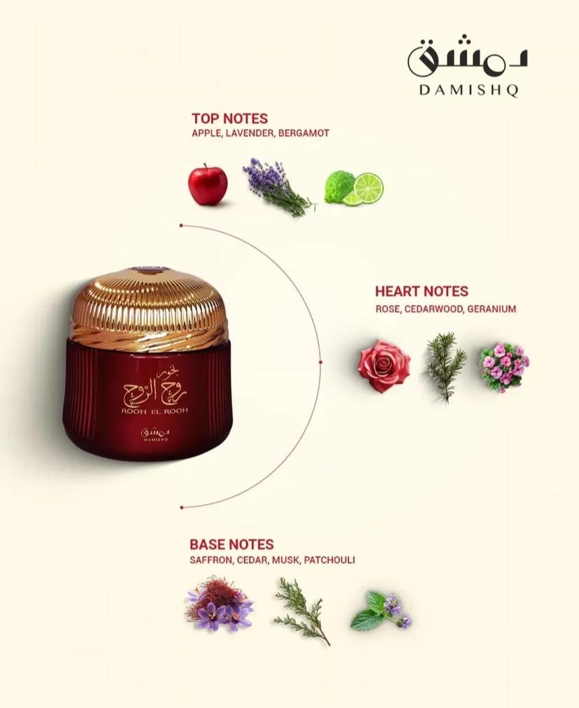 DAMISHQ BAKHOOR ROOH EL ROOH Arabian Luxury Long Lasting 85gm Bakhoor OUD CHIMHUN, ZAFFRAN, KHUS, LEMN DE SANDAL, MOSC