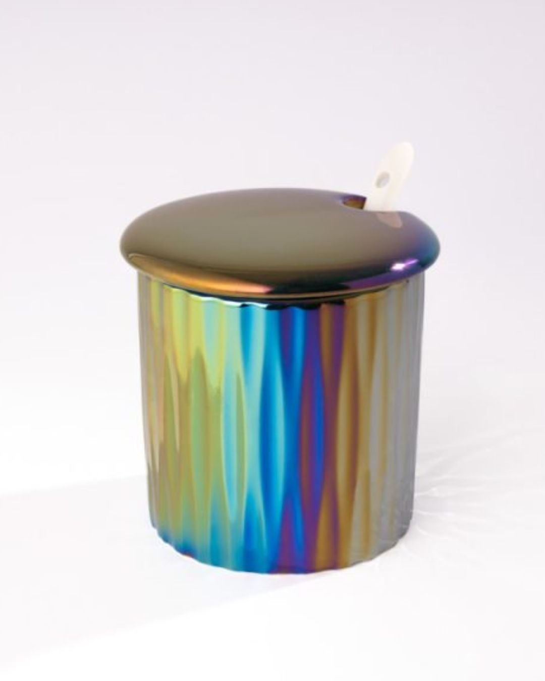 Adaugă un strop de rafinament bucătăriei tale cu acest set de 4 recipiente ceramice mov holografic, prevăzute cu capace etanșe și așezate pe o tăviță suport elegantă. Ideal pentru păstrarea condimentelor, zahărului sau a altor ingrediente esențiale, acest set impresionează prin designul său modern și finisajul cromatic spectaculos.